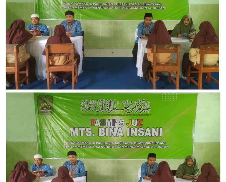 Peserta didik diseleksi bacaan Al-Quran untuk layak atau tidaknya masuk kedalam program unggulan Tahfidz di MTs. Bina Insani Surabaya