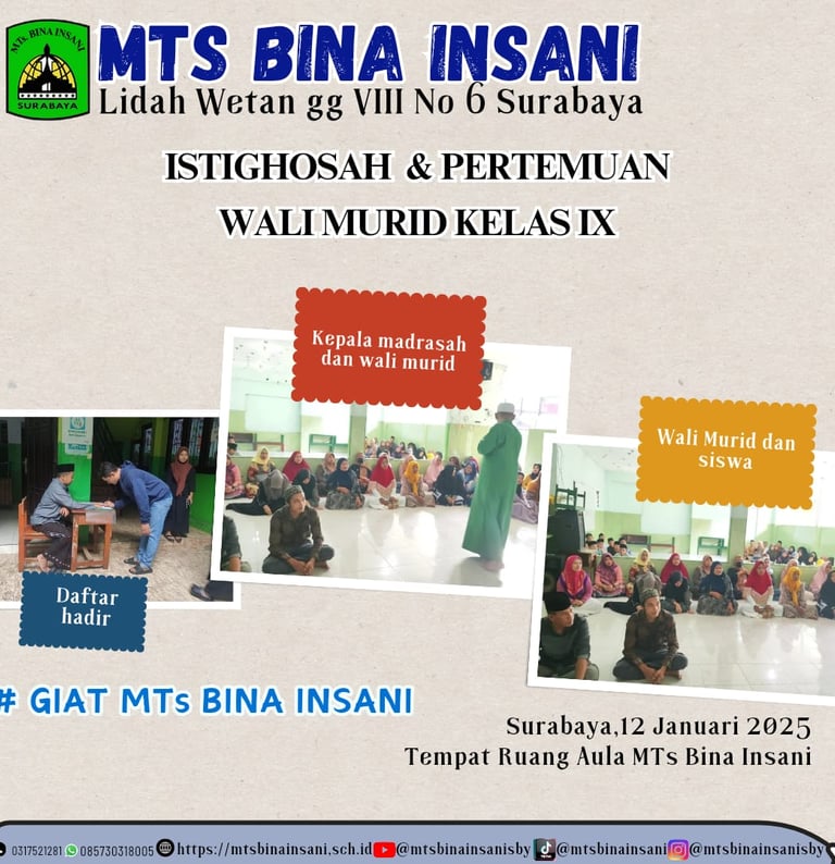 Salah satu kegiatan wajib yang dilaksanakan di MTs Bina Insani Surabaya yang menjadi salah satu booster pembelajaran komprehensif dalam mewujudkan tercapainya Visi dan Misi Madrasah.